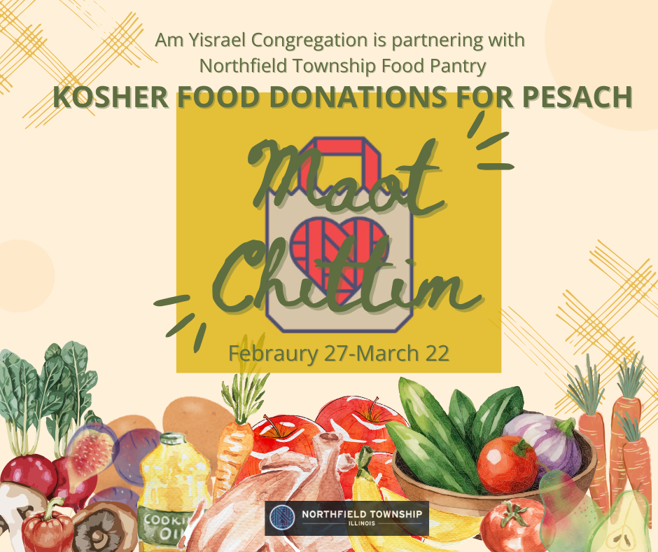 This Purim and Pesach season we are collecting kosher food donations in partnership with the Northfield Township Food Pantry. Please consider making a donation in the spirit of Matanot L'evyonim--one of the Commandments of Purim.